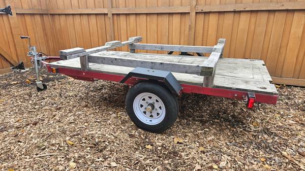 4' x 8' flat bed utility trailer sold by Northern Tool Company. 11.5' long. Tires in good shape and properly inflated. Lights in working condition. Bed in good shape. Will provide bill of sale. Will...