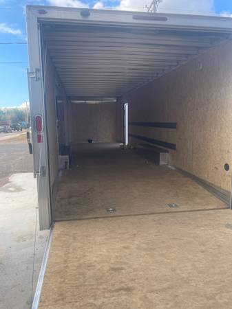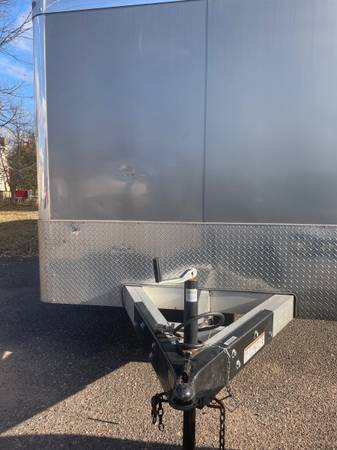 Legend all aluminum enclosed trailer.. Upgraded tires and axels. 10K. I bought it new last fall from a dealership and took it to Florida with a load of furniture and back to Minnesota . Aprox. 3500 miles. Pulls really nice.. Rich battleship grey, with LED lights, illuminated door handle. Spare wheel with tire. E track on one wall, with 4 straps. Clear title, available for immediate pick up. Built in locks. Side escape door to transport vehicles. Easy to open rear ramp door. Come and check it out . . .