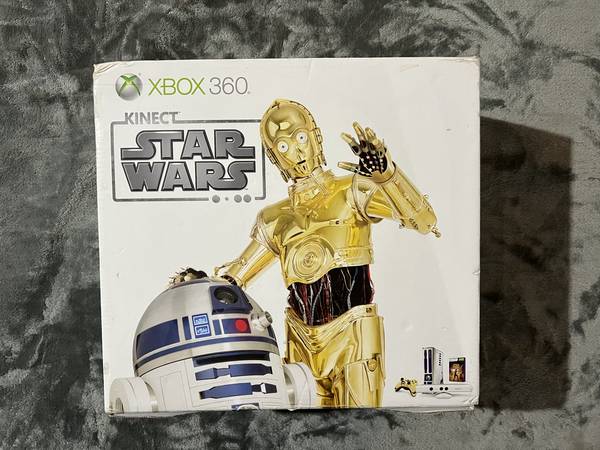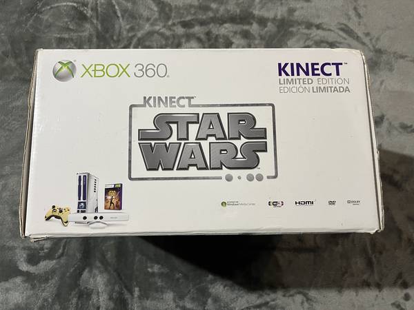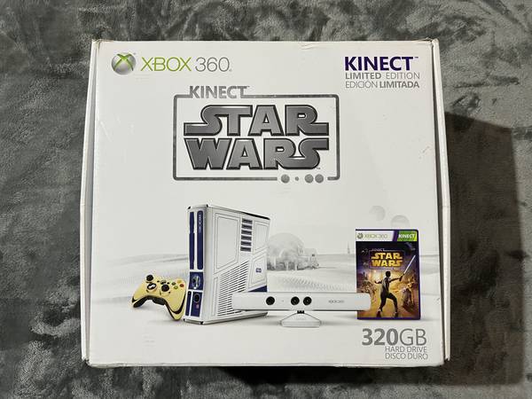 Star Wars XBox 360 320GB Limited Edition Console Bundle Complete in Box (CIB): R2-D2 console with 320 GB Hard Drive - Gold (CP30) controller - Kinect sensor - Headset - Star Wars Kinect Game - Power cords - Original Star Wars box - Bonus Games: Kinect Adventures, Fable 2, Fable 3. *Gently used by adults only - very good/excellent condition
