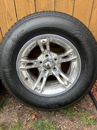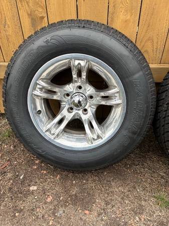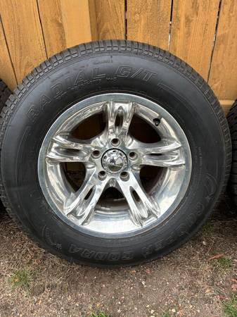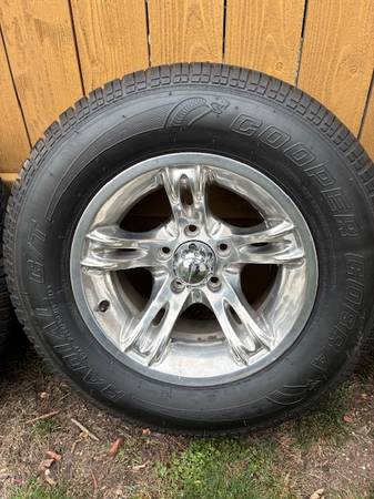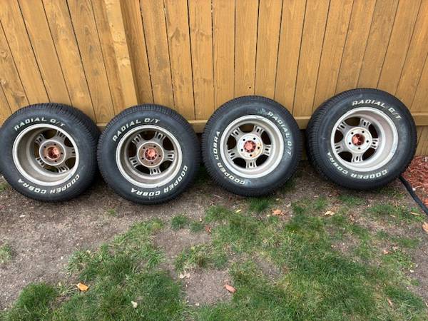 Set of 4 alloy wheels with Cooper Cobra tires. Came on my truck. 2 tires are 245/60-15, date code 0318, 2 tires are 255/60-15, date code of 1 is 4417, the other is 3917. May have 1000 miles on them. Back spacing is 3.75". Center caps included.