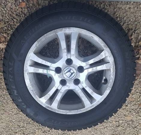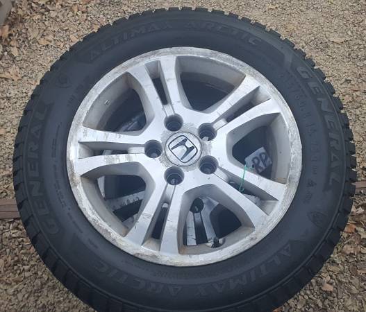 Selling my set of 4 snow tires on alloy wheels in used but working condition. Ran them on our 2006 Honda Accord but sold the car this summer. Plenty of tread left on them. The rims are OEM Honda EX rims. The rims have some surface etching from salt, etc over the years but they were used last winter just fine. These are daily drivers with to get you through the MN snow and ice. See pictures.