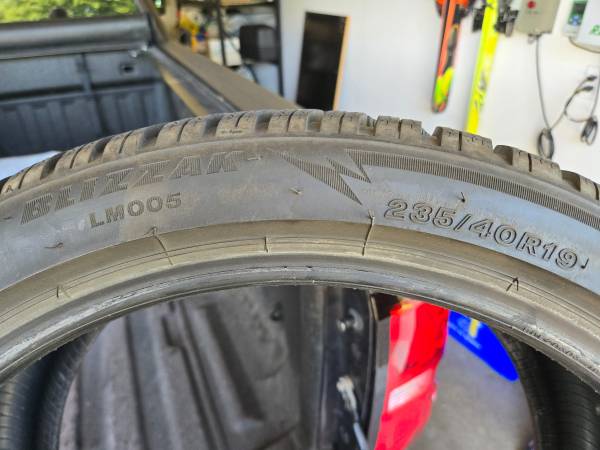 Like New - Bridgestone Blizzak LM005 - 4 Tires. * Tire Size: 235/40R19 * Tread Depth: (2) Tires at 9/32, (2) Tires at 8/32 (Original Tread Depth When New: 9/32) * Very low miles/Use * Link to...
