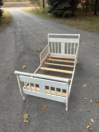 Toddler bed - free Needs a good cleaning- dusty from shed. Needs a fresh paint job. It’s sturdy. Free if you can use it.