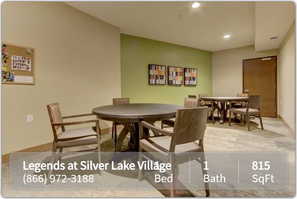 Come and join us at The Legends at Silver Lake Village, our premier independent living community for adults aged 55 and older in St. Anthony, MN. Entertain family and friends, stay connected with the active lifestyle you love, and relish the convenience of maintenance-free living.