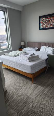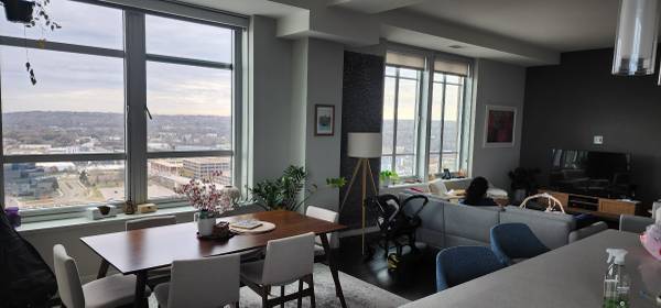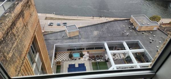 This is a beautiful 17th floor penthouse unit with views of the Mississippi River in Lowertown St. Paul, minutes from restaurants, bars, farmer's market, Xcel arena and CHS field. The corner unit has windows throughout the walls flooding the unit with sunlight, even in dark winter months. The primary bedroom has a large walk in closet and a soaking tub. Both bedrooms have ensuite full bathrooms. The office can double up as an additional bedroom if needed (we had a desk, office chair and a twin bed). There's another half bathroom and a separate laundry room with storage. The living and dining area have an open concept with a modern kitchen (gas stove, oven, microwave, refrigerator) with a large central island. The apartment also has a private patio to sip your morning coffee overlooking Mississippi. There is dedicated underground garage parking (additional charge as below) including EV charging options. The amenities floor has an outdoor pool and hot tub, grill area and bocce ball area. Indoors you'll find a state of the art fitness center, yoga room, sauna and a pickleball court. There are 3 large club rooms available to entertain, with kitchenettes, pool table, shuffle board and music system. We have loved living here but need to move out to a new house.