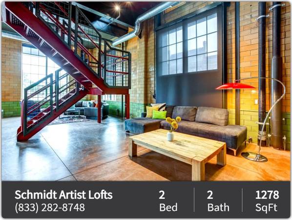Schmidt Artist Lofts participates in an affordable housing program. Household income, artist qualifications & student status limitations apply. The household income is based on GROSS annual income (before any deductions) earned from all sources including wages, social security payments, public assistance, pensions, annuities, interest income, dividends, stocks, bonds, insurance settlements, recurring gifts from family/friends, lottery winnings, etc. The property has a minimum household income requirement of 2.5 times the monthly rent amount to qualify. Third party verification will be required of all income and copies of tax returns and pay stubs may be required. Total household income must be UNDER the listed limits based on household size.