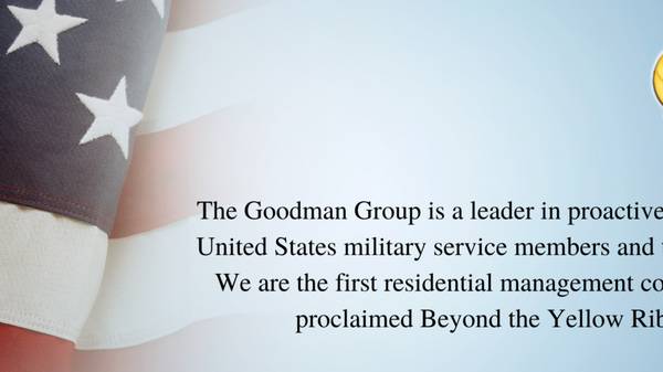 The Goodman Group is proud to be the first property management company in the state of Minnesota to be proclaimed a Yellow Ribbon Company. As a Yellow Ribbon company, The Goodman Group adopts the mission to honor veterans and service members and military families in all of its managed communities nationwide through services and support. The company manages 150 veteran team members and 400 resident veterans across the country.