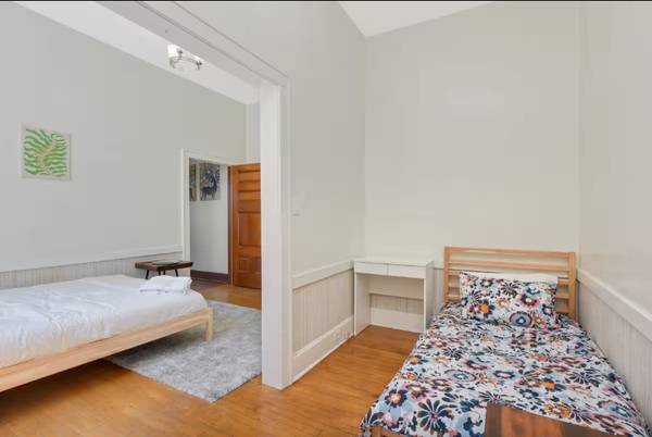 Large 1/1 in stately 1880s mansion turned apartment. Ground floor, large porch, quiet corner, across from Indian Mounds Park w/ glorious Mississippi River + downtown views. High ceilings with architectural touches, large living room, full kitchen w/ dining table. Queen bed in bedroom and open connected room w/ desk / twin bed. Sleeper sofa in living room. Easy parking in front. Sleeping arrangements: Bedroom 1 - queen sized bed Bedroom 2 - twin bed, take note that this room is connected to bedroom 1 and has no door Living room - sleeper sofa that can turn to a queen bed What's Inside the Unit: High Speed WiFi luxxe mattress Smart TV to stream Netflix, Disney+, etc. (please use your personal log in) HD TV with variety of channels via Roku microwave Stove Toaster Kettle Basic cooking utensils Dinnerware and silverware coffee maker We don't have dedicated parking area in the unit but you can find ample free street next to house as this is not a busy street.
