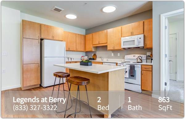 The community spaces are designed for building a true sense of community, with an outdoor pavilion, grilling and picnic areas, a card and crafts room, a theater room, a fully equipped, on-site fitness center, and more. *The Legends at Berry participates in an affordable housing program. Household income & student status limitations apply. Please call for more details.