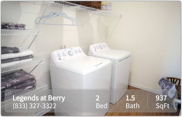 The community spaces are designed for building a true sense of community, with an outdoor pavilion, grilling and picnic areas, a card and crafts room, a theater room, a fully equipped, on-site fitness center, and more. *The Legends at Berry participates in an affordable housing program. Household income & student status limitations apply. Please call for more details.