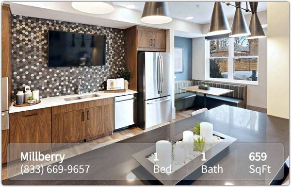 Residents of Millberry get to enjoy a plethora of amenities such as a gorgeous community room with wi-fi access and fireplace, a modern on-site fitness center, underground heated parking & more. Furthermore, our gorgeous apartment homes feature an in-home washer & dryer, luxury vinyl plank flooring and quartz countertops, just to name a few.