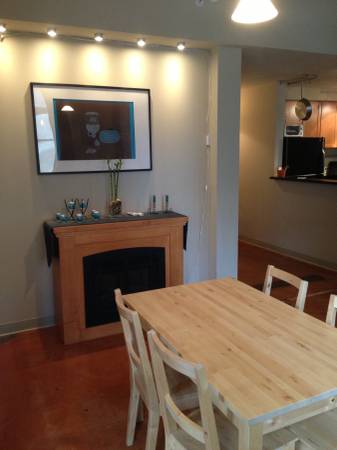 This is truly loft-style living with an opened floor plan and comfortable finishes. A relaxing living room with leather furniture looks out onto the bustling city life. The kitchen is perfect for throwing together tasty dinners in a snap. Set the ambiance in the dining room with an electric fire place (that also doubles as an additional heater in the winter). The bedroom has a view of the capitol most of the year (after the leaves fall from the tree outside the window). A small office area with a desk and chair would be the perfect place to work on your next big project.