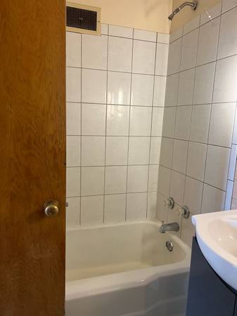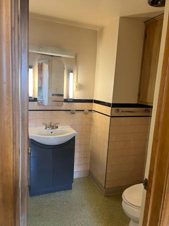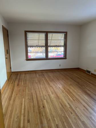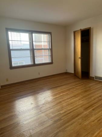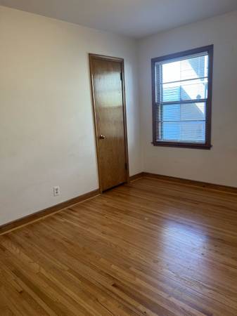 One bedroom with hardwood floors, front door and back door, secure building, on street parking, near the bus line and light rail.