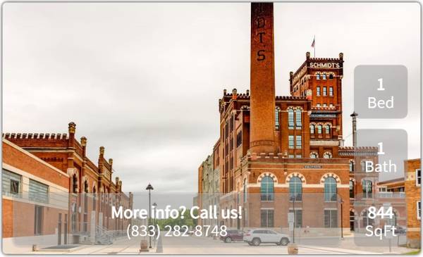 Additionally, you will enjoy a fitness center, community party room, rooftop deck & clubroom, and a yoga/Pilates room. When you move into your room you will find loft-style homes that take advantage of natural light and the existing character of the old Schmidt Brewery. Don't wait & give us a call today!