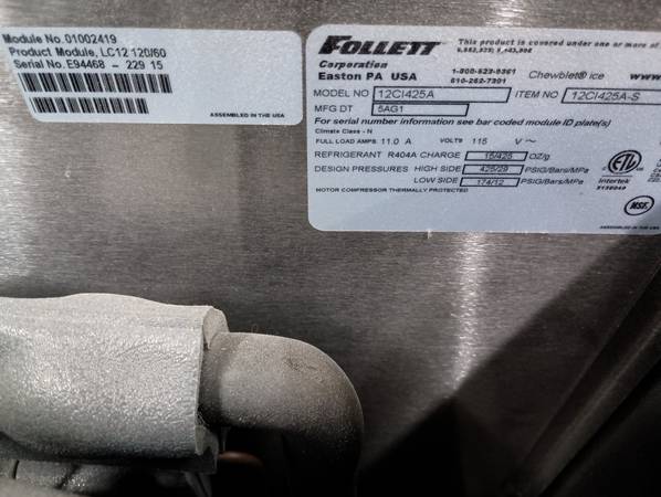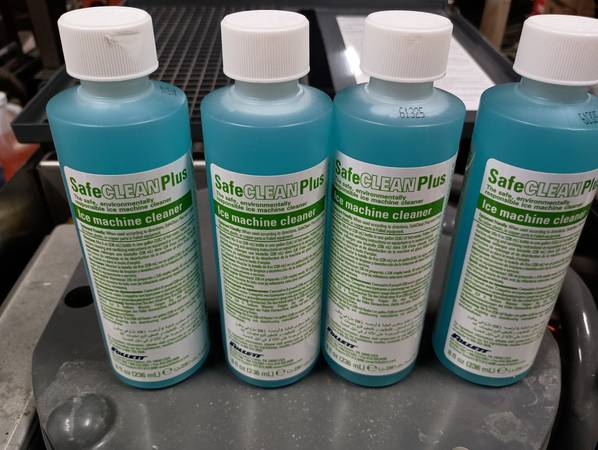 Will produce over 400lbs per day and stores 20lbs in the hopper. I am including 4 bottles of the manufacturers descaling solution (will make enough for 12 cleaning cycles), they are ~$40 per bottle. The recommended cleaning cycle I found was every 6 months, so the buyer should be good for quite a while.