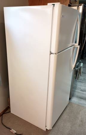 Frigidaire Model FFTR1821TW4 18.3 cu-ft refrigerator with top freezer. In like-new condition - no scratches, dents, stains, cracks, etc.