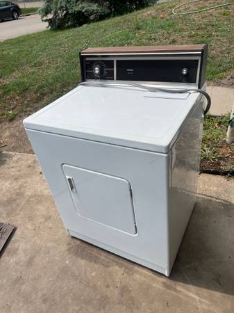 29” wide x 26” deep x 36” tall in front . Has been cleaned . Lint has been blown out . I can help load 3 prong . Model number in picture