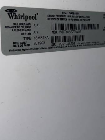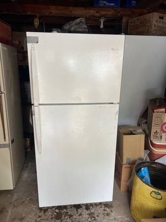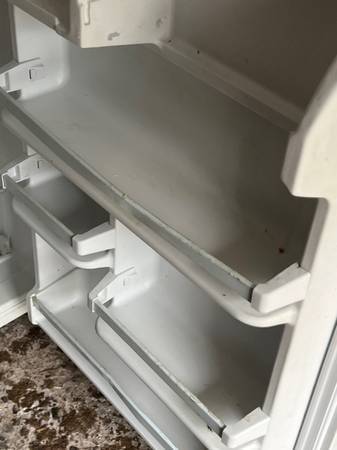 works 29 7/8 inches wide 33 inches deep with handle 65 1/2 inches tall fairly clean. I can help load . model number in picture 30 day warranty. I can help load. It's missing one little crisper shelf...