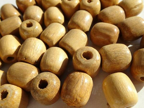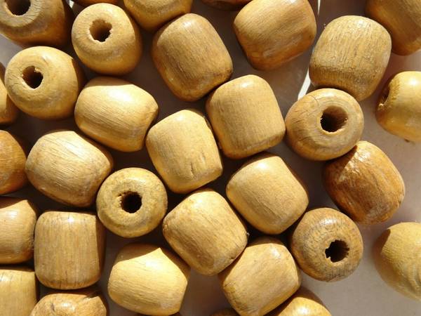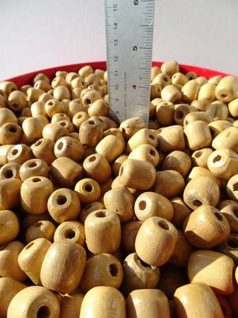Apprx 1400 Natural Wood Turned Craft or Macrame Beads. Vintage blonde wooden barrel shaped beads.