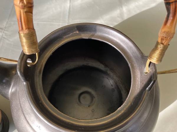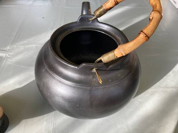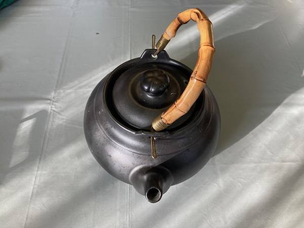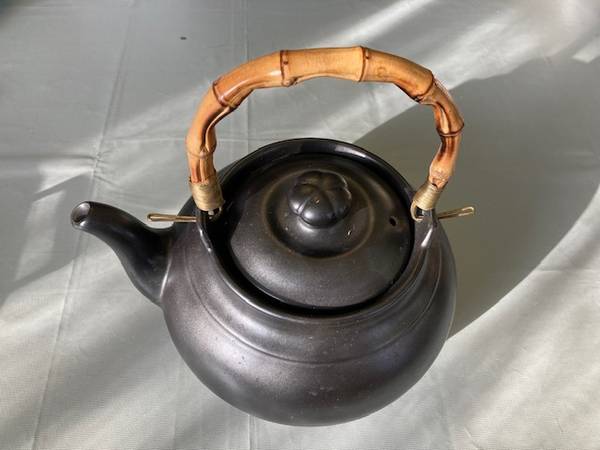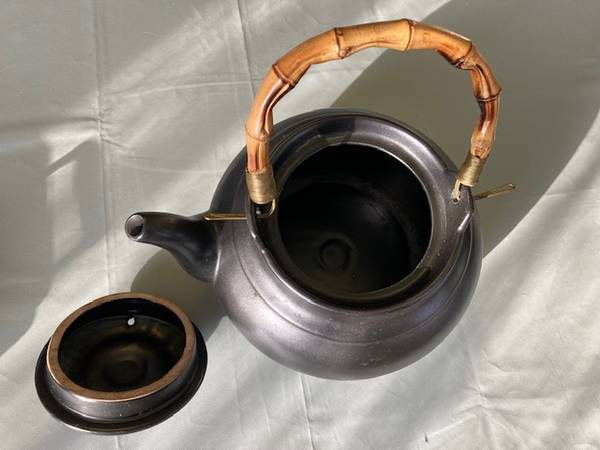 Ceramic Stoneware Teapot Bamboo Handle - Excellent Condition! Pot Diameter = 8 inches Pot Height = 5 inches