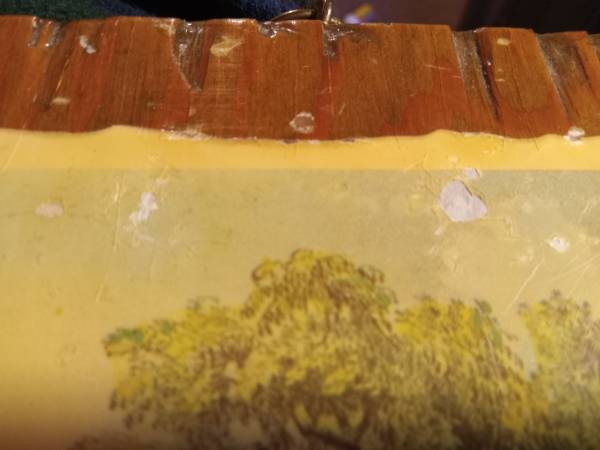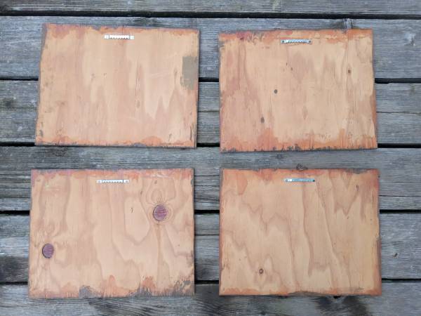 Really good condition. A few scrapes on a 3 of them, and some cracking in the sealer or poly that is on one.