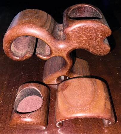 Handmade from black walnut wood, purchased from artist in NH years ago. Two little compartments, good for stashing trinkets.