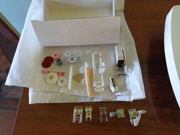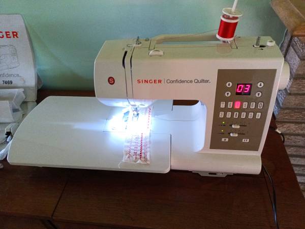 Tested and comes with all accessories, manual, removable extension table. Massive amount of decorative stitches. Machine is in excellent condition. Manual and plastic cover in fair condition (see images). Has built in needle threader, thread cutter. This was my first machine, but I've started sewing more than just quilts and simple clothes, so it's time to let her go. Emails & cash only.