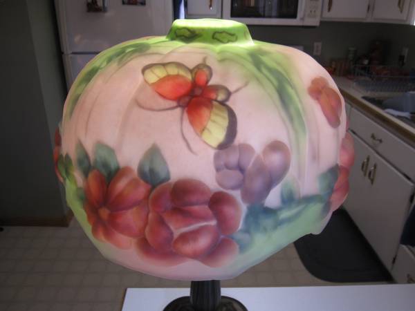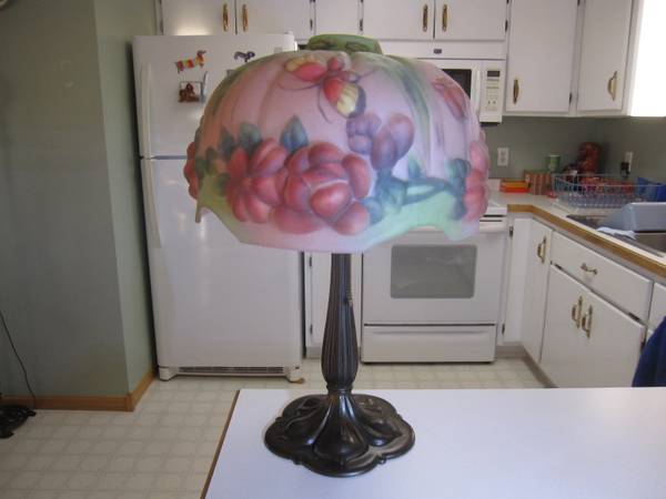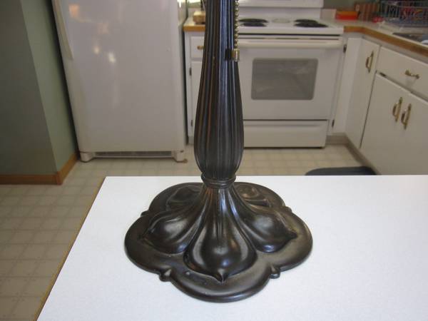 Antique ornate Bradley and Hubbard lamp with Puffy shade in excellent condition for age. Original pullchain socket. Professionally rewired with period correct cloth cord and ready to enjoy. Lamp is 100+ years old. Shade is an earlier Meyda Tiffany reproduction which is better quality than the current ones offered at over $400 on Amazon and are drilled and an inch smaller. 23" tall. 14" diameter shade. Was originally $695 Now $300 Firm. Cash or PayPal. Note: Replies must include a phone # for response...Click on ''more ads by this user'' to view more ads
