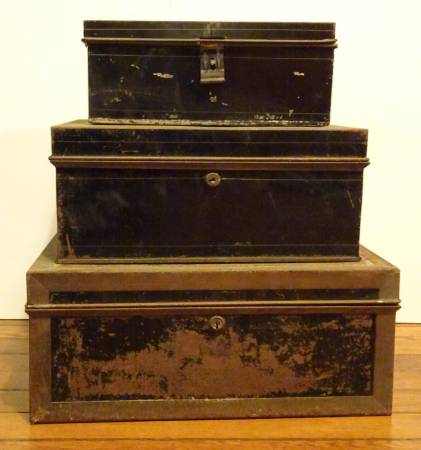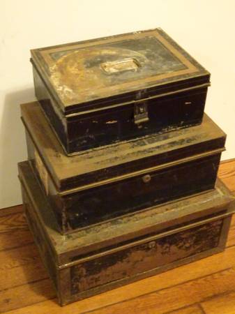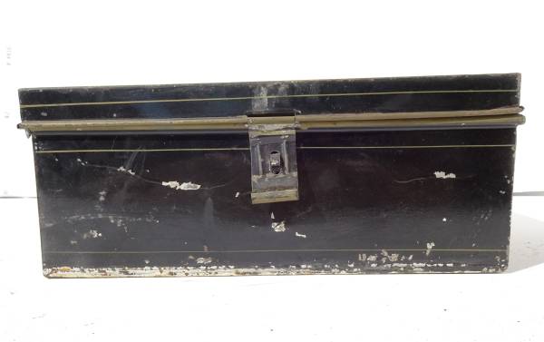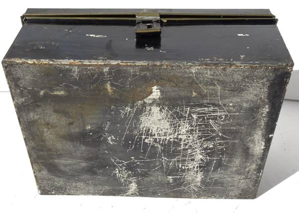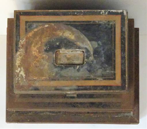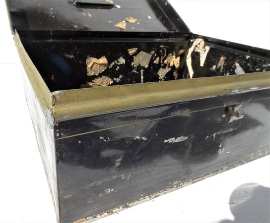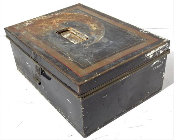 Antique 1920s Metal Bank Cash Document Box, Vintage 12" Tin Security Lock Box