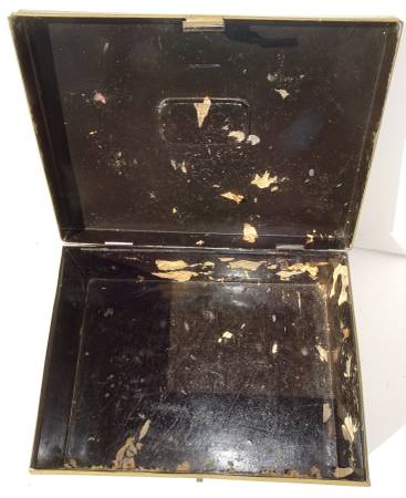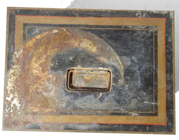 Antique Metal Document Cash Deed Box 12" x 9" Vintage Tin Lock Box early 1900s with hinged lid and handle.