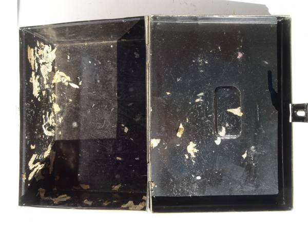 Interior is generally rust-free but includes spots and wear, including some original paper scraps stuck to the sides of the interior. I left them for authenticity, but they will certainly come off.
