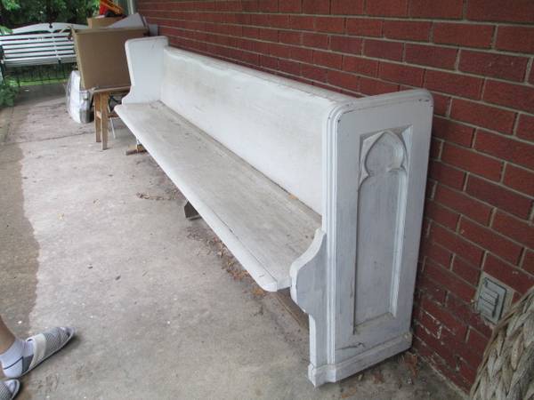 This bench was an ORIGINAL church bench from a Lutheran Church in GERMANY. It was purchased by Crystal Lake Cemetery and was in the Cemetery Chapel. When the cemetery remodeled their Chapel, they replaced all of the church benches With modern new benches. Employees were given the opportunity to have one of the benches. I was working there at that time and that is how I got this bench. It now needs a new home. FREE....CALL TO ARRANGE TO PICK UP