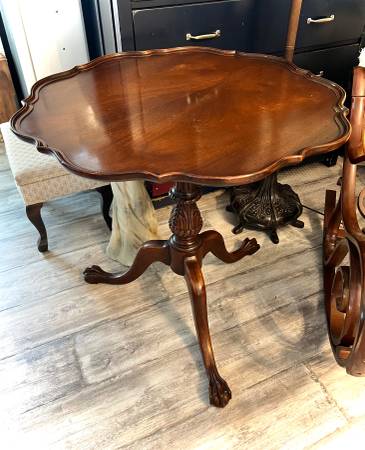 Chippendale Style Ball & Claw Mahogany Pie Crust Top Table - $320