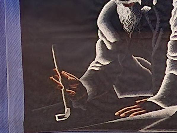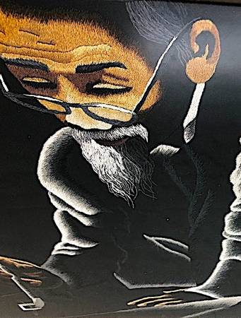 Intricate needlepoint Asian art in great lucite frame. So intricate it's hard to tell it's embroidery rather than a painting. XQ Da Lat Vietnam. 21" x 24". Custom Lucite frame.