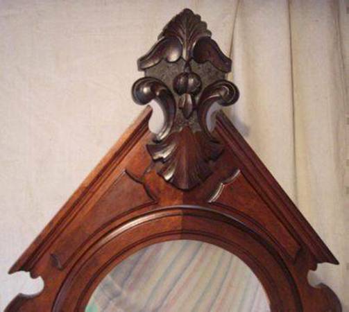Hand carved accents. Solid wood throughout. Tongue and groove carpentry. All original. Original finish, has not been refinished or touched.