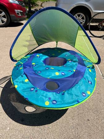 Baby float with sun shade. No issues. From a non-smoking home.