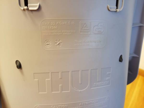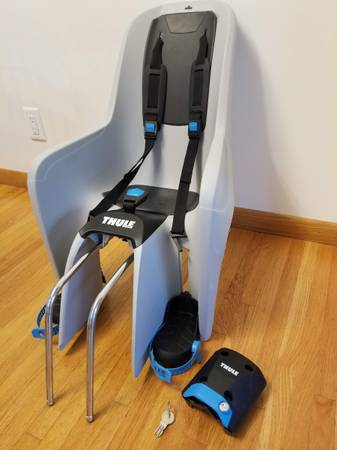 Thule RideAlong Lite bicycle seat for children up to 6 years old, 48 lbs. It mounts to the frame (seat tube), and the removeable seat can be locked to the mounting adapter; two keys are included. For more details see: https://www.twowheelingtots.com/thule-ridealong-lite-review/