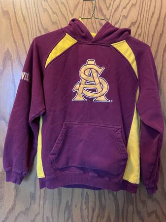 Arizona State University Sun Devils hoodie, sz youth XL (20). Similar in size to an adult S. In excellent shape with no visible wear. Beautiful embroidery on the chest and both sleeves. See photos...