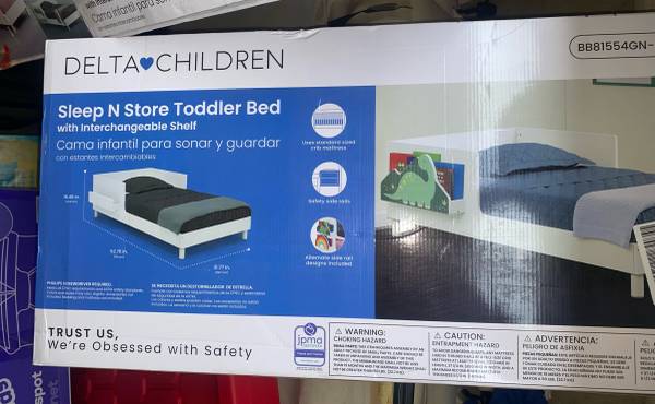 Delta toddler bed with interchangeable shelf. New in box.