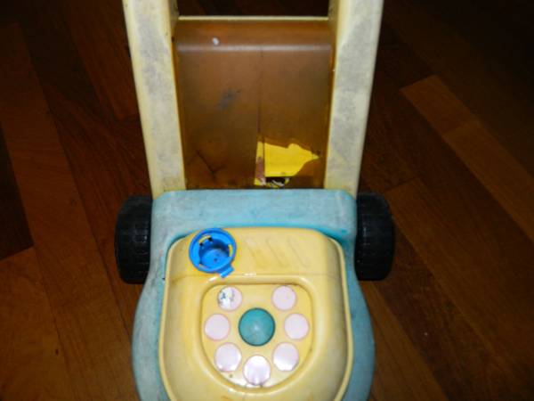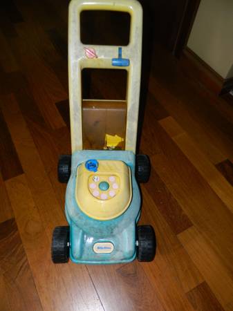 Vintage Little Tykes Lawn Mower for $5. Some Cracks but still works. If interested, text or email.