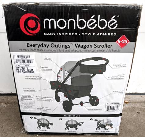 In between adventures, the Monbebe Everyday Outings Wagon Stroller easily folds up for compact, self-standing storage. Assembled weight 32.85 lbs.