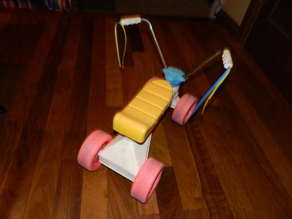 Vintage Playskool Ride On Scoot Wiggle Wagon Children's Trike with Banana Seat for $10. If interested, text or email.
