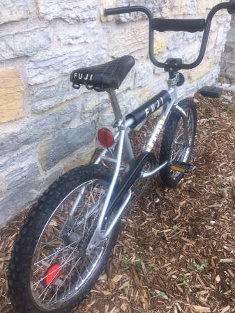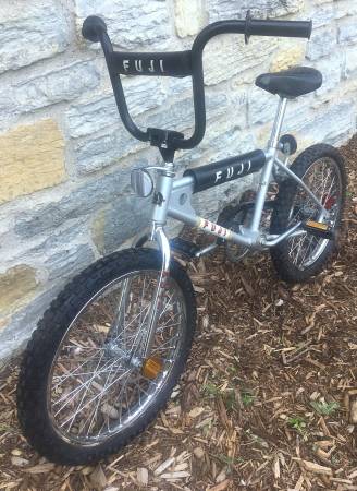 1982 Fuji MX-500 BMX Bike. 12" c-t seat tube, 17 1/2" c-c top tube, 20" wheels. An amazing survivor with a full nut/bolt preservation. Presents like new. All original other than the genuine Akisu chrome BMX fork, which was added at some point. All components have been greased, preserved and adjusted. Even the pedals were fully taken apart and reassembled. You won't find a nicer one. Would be a great addition to your BMX collection. Cash only, firm on price.