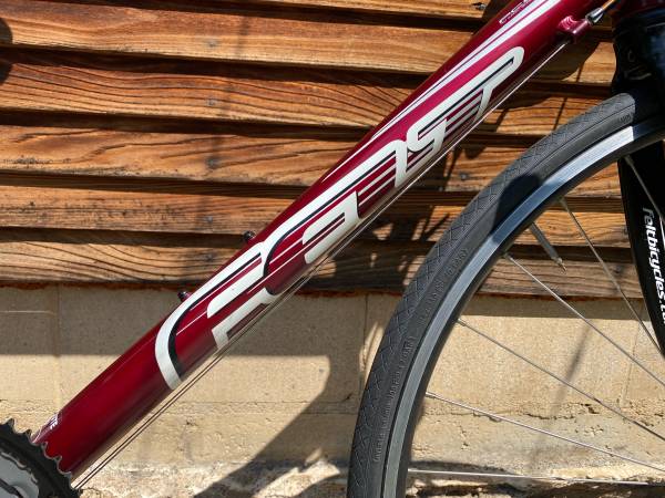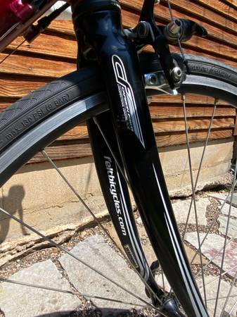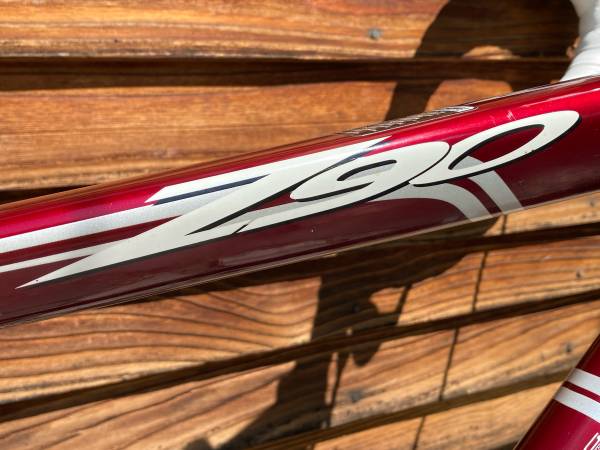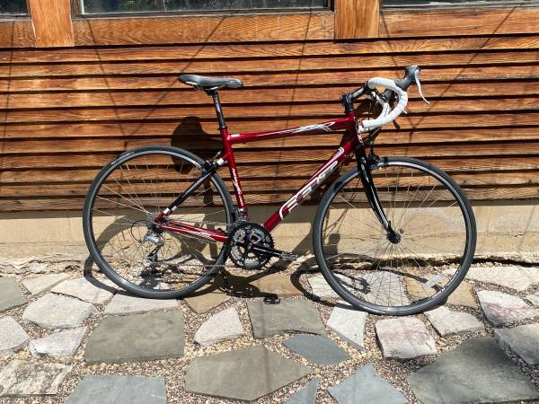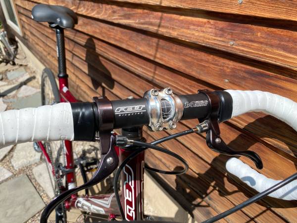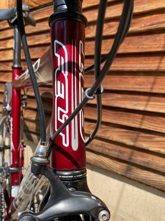 Aluminum frame with a carbon fork. Compact style geometry has a modern feel. This bike is lightweight, quick, and easy to handle. Fully overhauled, featuring new cables & housing for both brakes and shifting. Bars have fresh cork tape, and feature the extra bar top interruptor style brake levers to go along with the standard integrated shift/brake levers. Shimano components work crisply. Tires are in good shape, wheels and tires are in very good condition, as is the drivetrain. Fully detailed, cleaned, overhauled and tuned.
