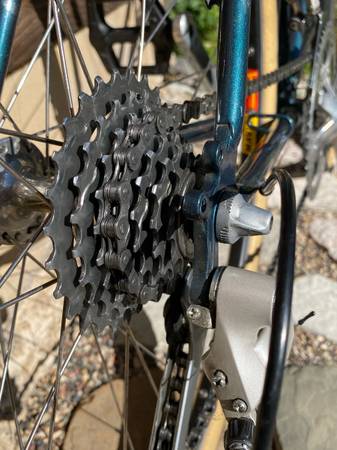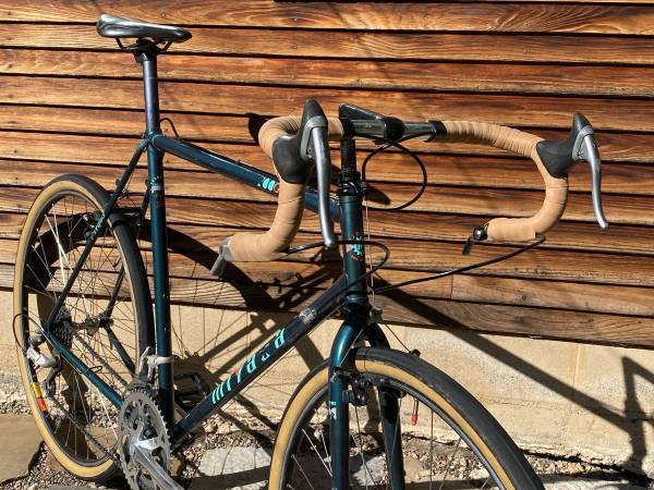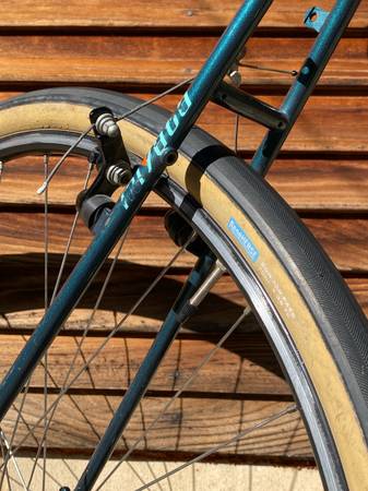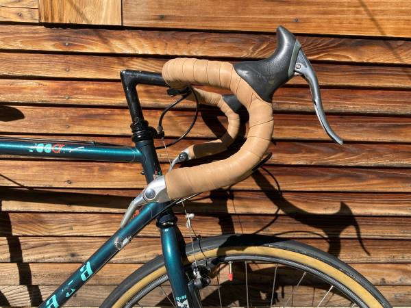 Bike has been upgraded with a matched set of Mavic hard ano rims on RX100 Shimano hubs. Shimano bar end shifting. New chain within a hundred miles. Drivetrain is very clean, shifts very reliably. Classic black anodized dia compe brakes work well. Wheels are true and smooth. The 700x38c Rene Herse Bon Jon Pass gravel tires are like riding on a cloud. In this case, setup with tubes for simplicity. Fully tuned, clean, ready to ride. No dents, dings or rust. A little wear on the decals, but overall, the bike is in very nice condition. Sort of like a cross between a surly cross check and a long haul trucker, except from the early 90's, lighter weight, and made in Japan, opposed to Taiwan. Somewhat of a sleeper, but bike nerds will appreciate.