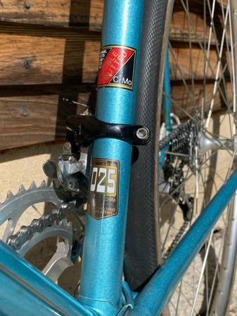 The frameset is lightweight, and the construction is very tidy. Clean lug work, paint has a beautiful metal flake, and is in very nice condition. Double butted Ishiwata tubing rivals the quality of high end tubing like Columbus or Reynolds. Beefy forged Shimano dropouts with needle adjusters are a cool detail.