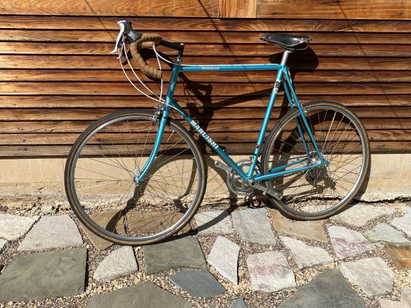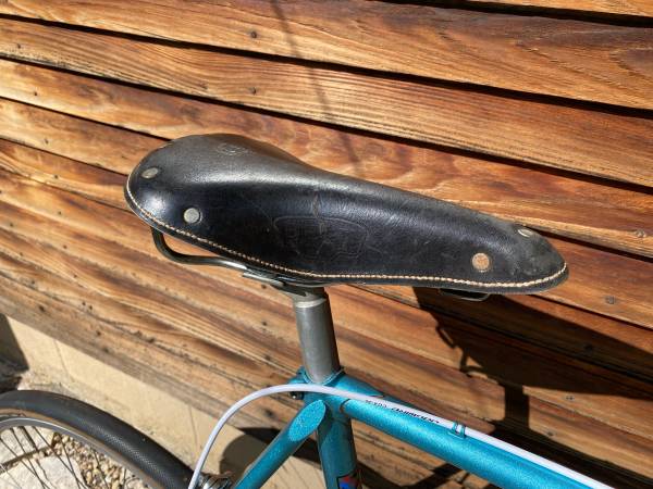 Vintage touches like the Belt, made in Japan, genuine leather saddle, and the Shimano 600 crankset set this machine apart from all the other bikes out there on the mean streets. New cables, new bar tape, new chain. Shifts crisply, rolls smooth. Lightweight, fast, comfortable. Unique and fun to ride.