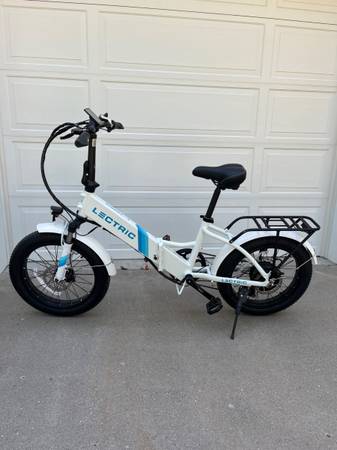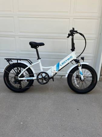 Like new Lectric e-bike Step thru makes getting on and off easier Foldable for easy transporting Only 101 miles Shimano 7 speed derailer Pannier (saddlebags) & owners manual