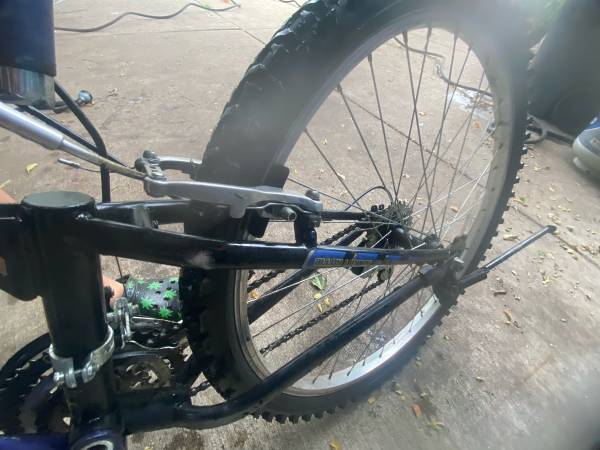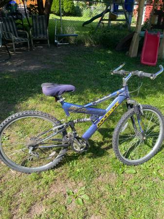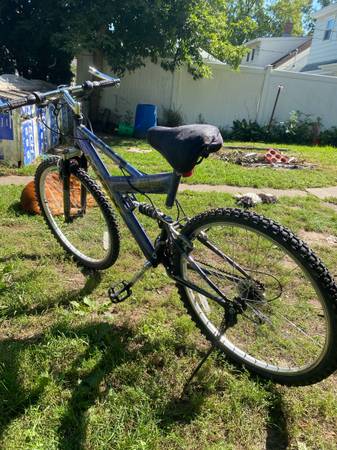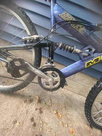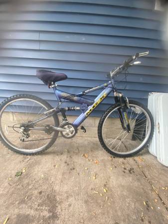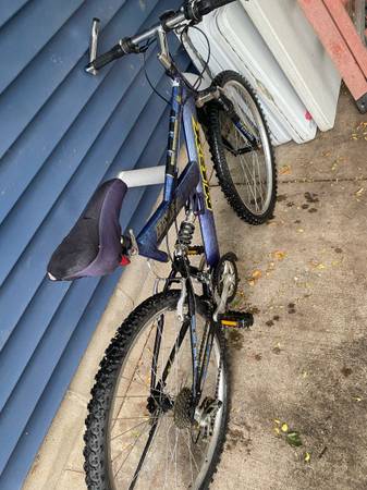 Selling a used Mongoose MGX mountain bike, perfect for anyone looking for a reliable ride on or off-road. This bike has a full suspension frame, which includes a front suspension fork and a rear shock absorber for a smooth ride over bumps and rough trails. It's equipped with V-brakes for solid stopping power and a 21-speed Shimano gear set that lets you tackle hills with ease. The tires are in good condition, with plenty of tread left for grip. This bike has some cosmetic wear but is in good mechanical shape and ready to ride. Great for commuting, light trail riding, or just cruising around the neighborhood.