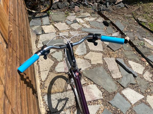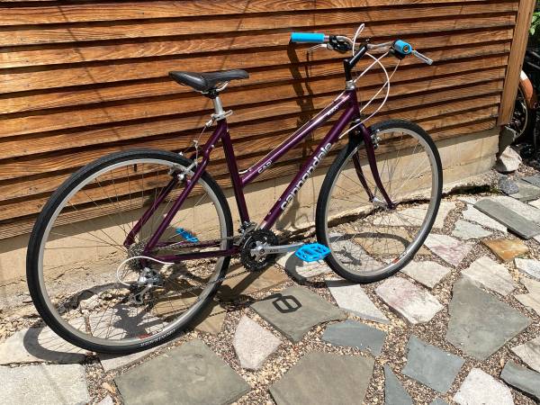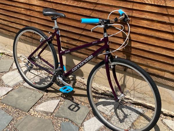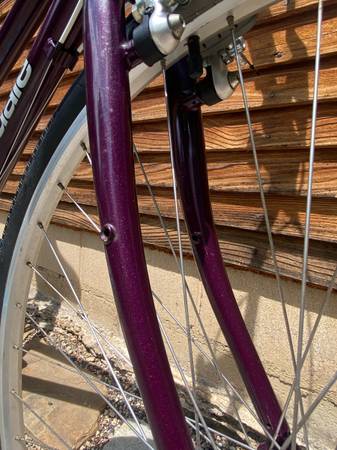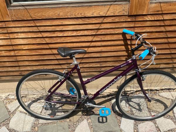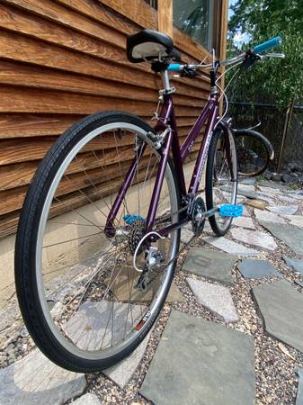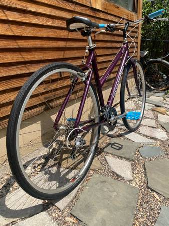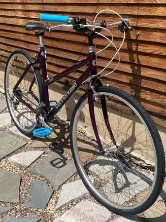 Bontrager saddle is comfortable. Converted to townie style bars for casual cruising. Fast on pavement, with enough tire volume to handle some rough stuff.